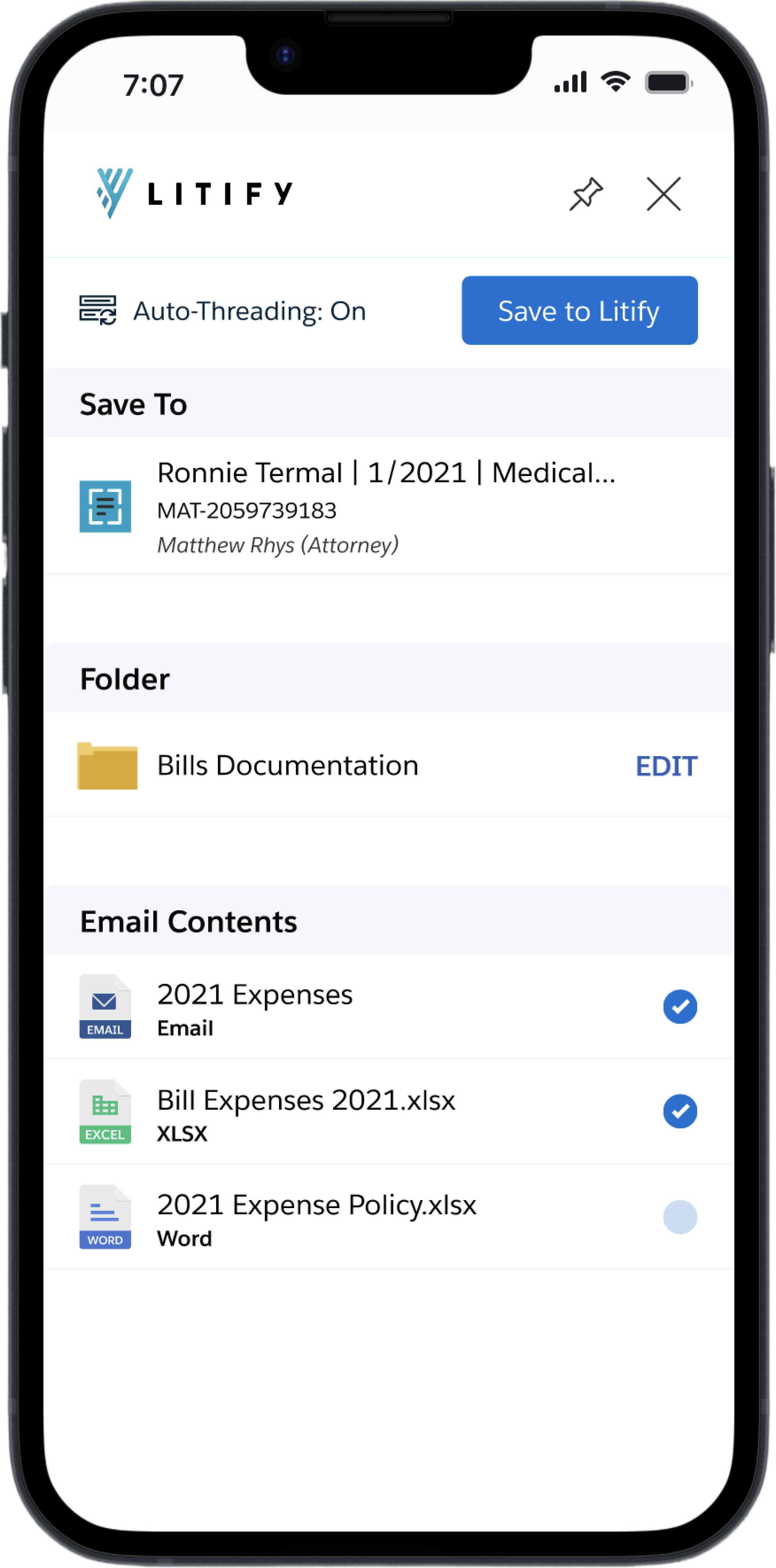 Redesigned the email syncing UX for Litify Thread, tailoring the experience to meet the unique needs of our legal practice user group.