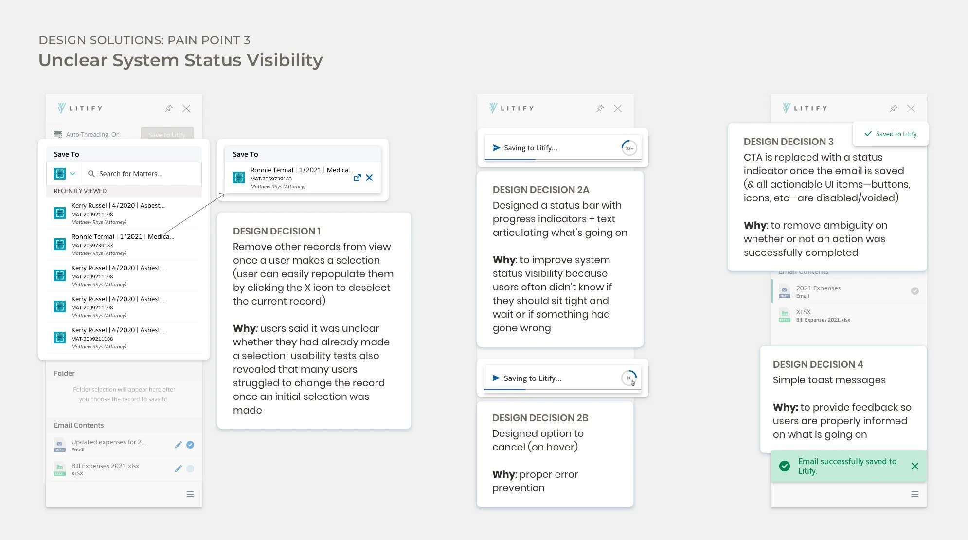 After saving an email, users often had to go to the Litify app to double check that it had properly saved—a habit that became second nature to many users