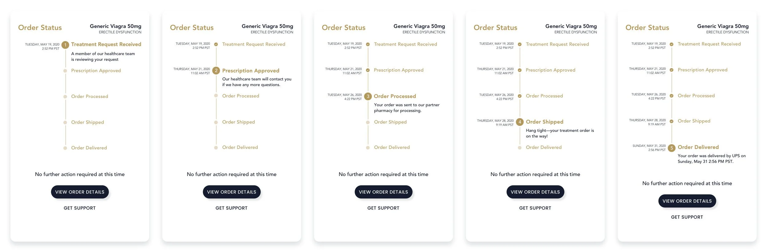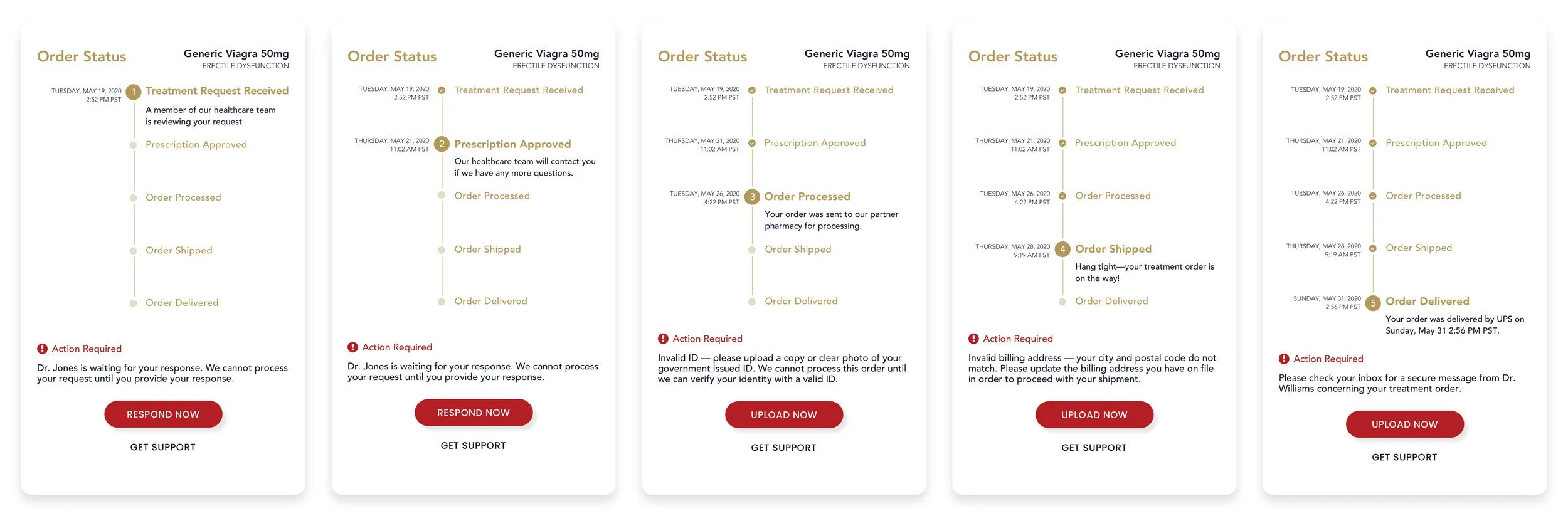 After users submitted their prescription requests, they had trouble identifying the status of their orders at any given time, and whether there were any additional steps they needed to complete. I quickly realized that a larger part of this problem was that users were unfamiliar with the overall prescription process, from start to finish.